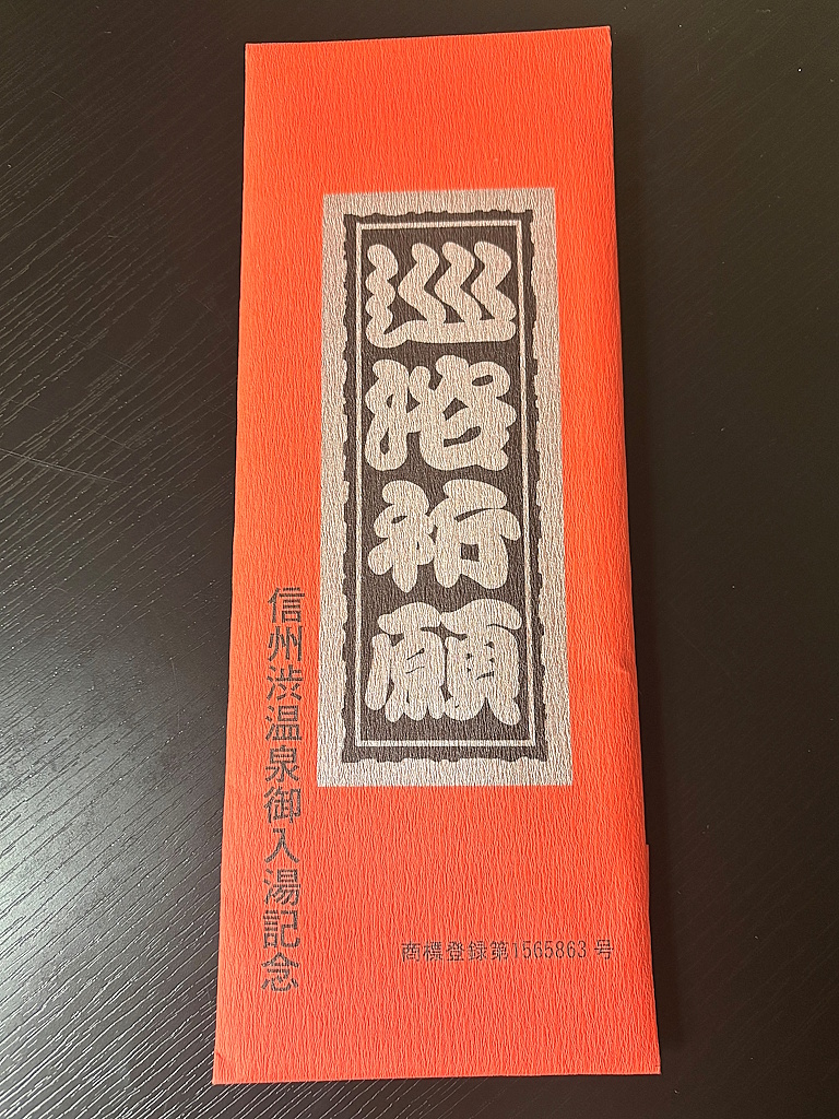 The “Japanese Trademark Registration No. 1565863” in the lower right corner really caught my attention. I dropped my bags in the room and immediately searched for it on J-Plat Pat (laughs). The trademark was for “巡浴祈願” (Onsen Hoping for Blessings), filed in 1979.